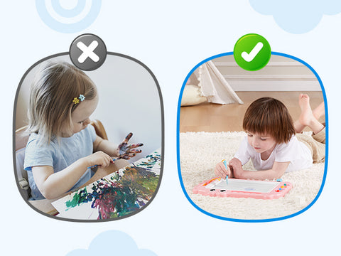 Easy and quick cleaning of all doodles with just one slight slide. Cleaner and safer compared to drawing on paper or walls.