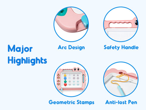 The drawing board has a perfect size and an easy-to-carry handle for kids to carry around.