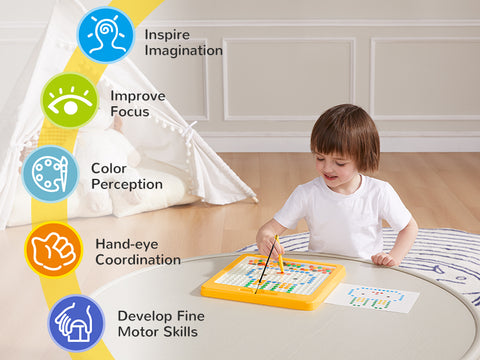 Educational & Fun: Kids can boost their fine motor skills, hand-eye coordination, and cognitive abilities by using the magnetic pen to draw up, slide, and drop down the colorful beans.